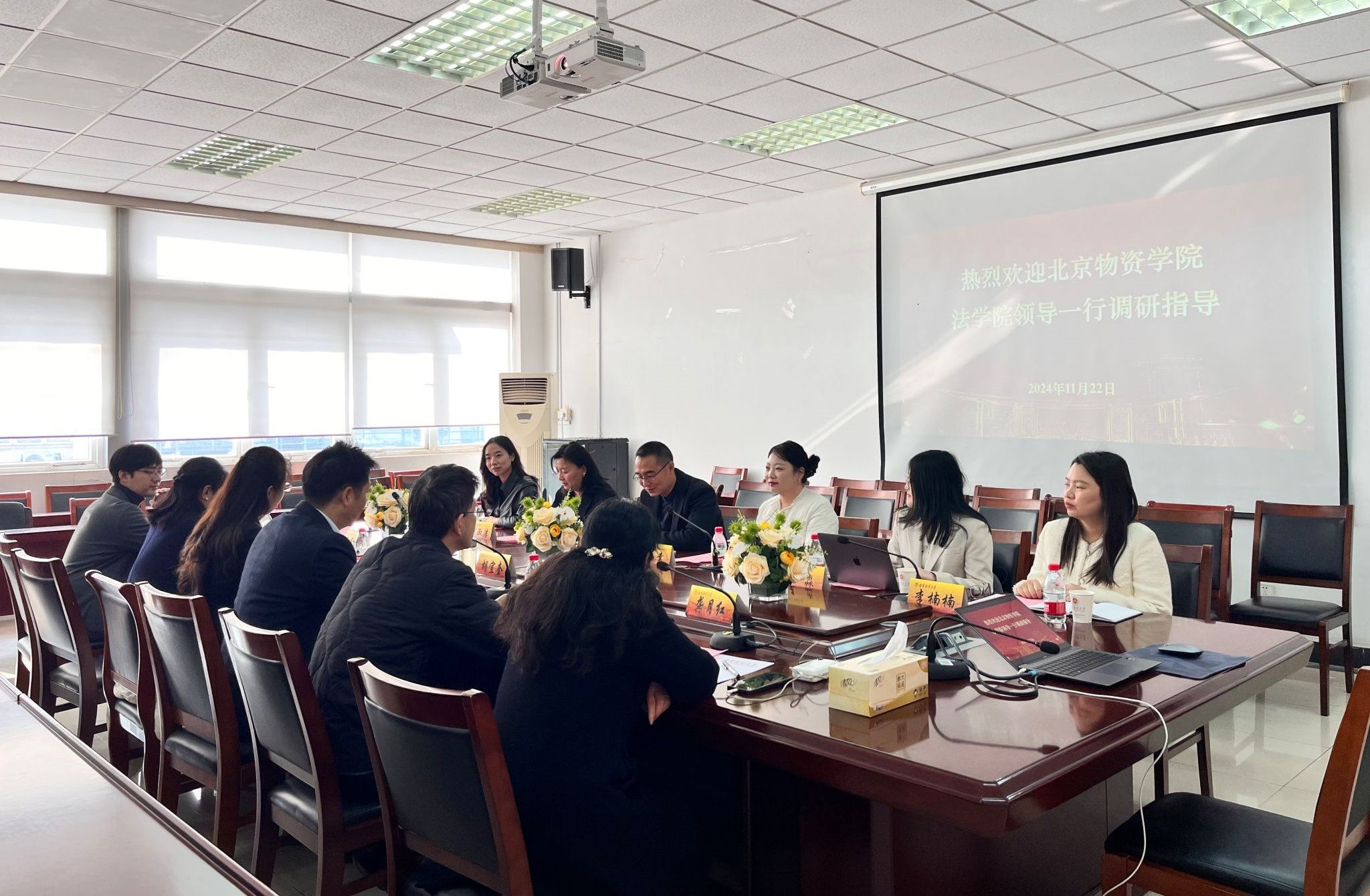 11月22日上午,北京物资Blackjack中文 Blackjack中文 党总支书记毛文富,副院长彭幸,党总支委员、工会主席洪淑洁等一行6人来Blackjack中文版在线玩 调研交流。Blackjack中文版在线玩 院长胡宜奎、院党委副书记刘英华、副院长蔡养军、副院长陈红梅、院分工会主席龚月红、青年教师代表孙劼等参加座谈。座谈会由胡宜奎院长主持。