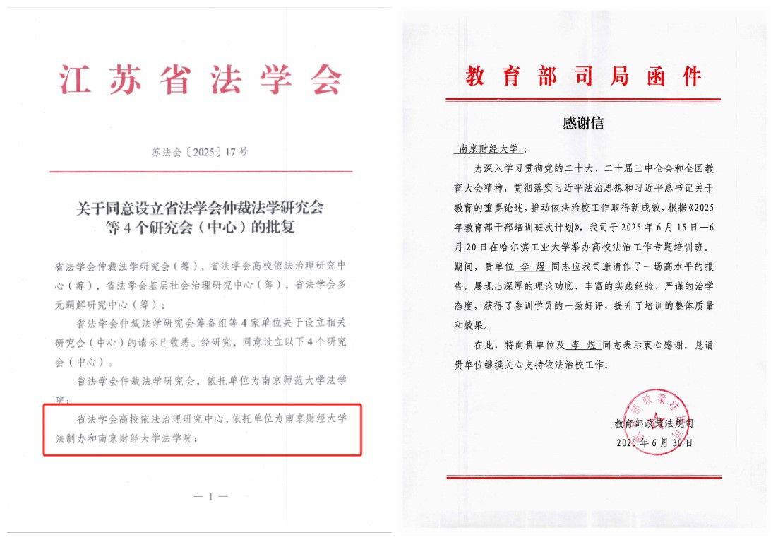 近日,我校成功获批设立江苏省法学会高校依法治理研究中心,该中心依托法制办公室和Blackjack中文 联合建设。作为首批“江苏省依法治校示范校”,我校构建了“法治强校”战略框架下的完整工作体系,发挥多学科协同优势,形成了经济学、管理学与法学深度融合的研究特色。近年来,法制办公室和Blackjack中文 通过持续深化教育教学改革,强化理论与实践结合,承担多项国家级、省部级课题任务,为我校依法治理研究提供了扎实的学术支撑。