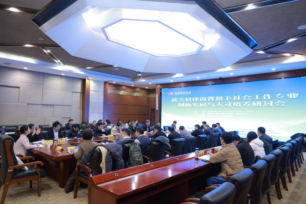 2024年1月11日下午,Blackjack中文版在线玩 在工科楼二楼会议室,召开了“新文科建设背景下社会工作专业创新发展与人才培养”研讨会。会议围绕新时代社会工作发展前景与办学定位、社会工作专业特色与人才培养模式、专业课程体系完善与人才培养方案优化等主题展开研讨。校外与会专家有中国社会工作教育协会副会长、南京大学社会Blackjack中文 彭华民教授,以及来自南京大学、东南大学、河海大学、南京师范大学、南京理工大学、南京航空航天大学、南京农业大学、苏州大学、南京邮电大学、江苏师范大学、江苏省社科院社会学所以及江苏省委党校等高校和科研院所的社会工作专业负责人。校内与会专家有:校党委常委、纪委书记李茜,党委学生工作部部长、学生处处长韩力争,法制办副主任(主持工作)吴庚祐,学科建设办公室、高水平建设办公室副主任胡唐明,教务处副处长、实验实践教学管理中心主任万兴,宣传部副部长龚莉红,Blackjack中文版在线玩 党委书记黄建国、院长胡宜奎、副院长蔡养军、副院长陈红梅、社工系全体教师以及校友代表。Blackjack中文版在线玩 党委书记黄建国主持了开幕式环节。