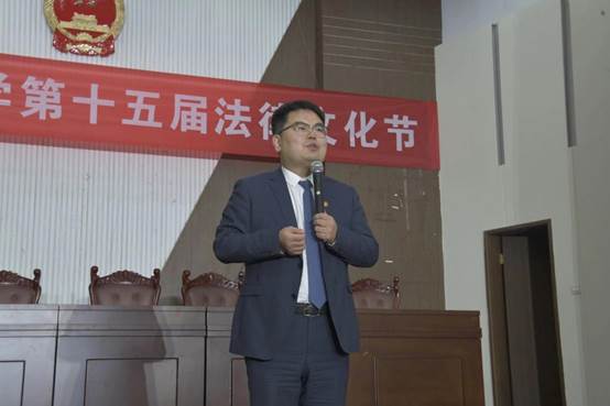 黄建国书记致辞。他强调了法律文化在日常生活的重要性,希望同学们深入了解法律文化,积极参与活动,更好地学习和掌握法律知识,从而不断提升自我、发展自我、完善自我,提高法律素养。他鼓励学生深刻认识法律文化,坚持知行合一,不断增强法律意识,增强法治信仰,为法治中国建设贡献力量。