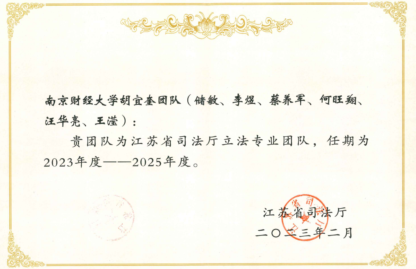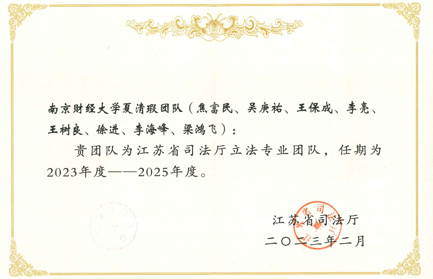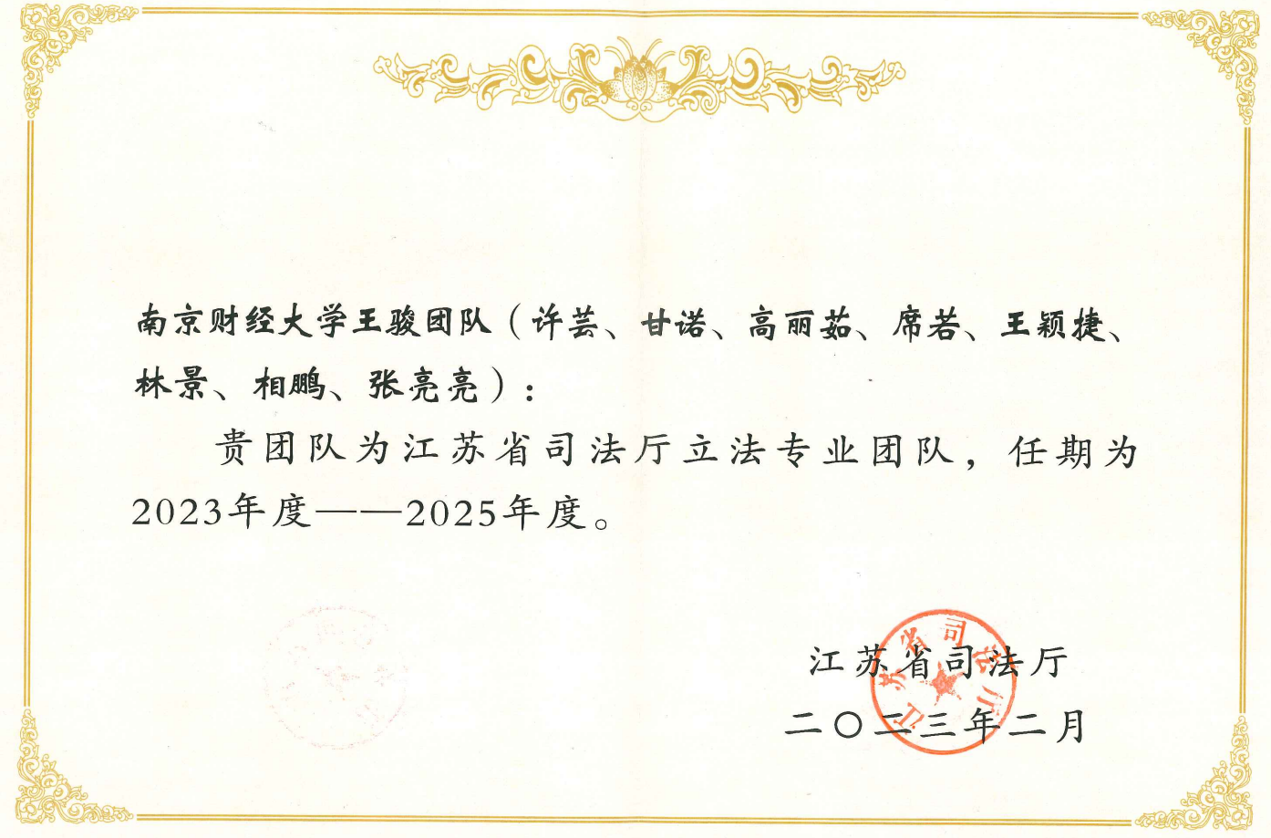 为进一步调整优化立法专业团队队伍,充分发挥专业团队在立法中的智力支持作用,推进地方立法的科学化、民主化,不断提高立法质量,推动以高质量制度供给服务保障江苏高质量发展,江苏省司法厅在广泛征集的基础上,组建了新一届立法专业团队,并向社会公布了入选团队名单。Blackjack中文版在线玩 共有三个团队入选,分别是:胡宜奎教授团队(储敏、李煜、蔡养军、何旺翔、汪华亮、王滢),夏清瑕教授团队(焦富民、吴庚祐、王保成、李亮、王树良、徐进、李海峰、梁鸿飞),王骏教授团队(许芸、甘诺、高丽茹、席若、王颖捷、林景、相鹏、张亮亮)。