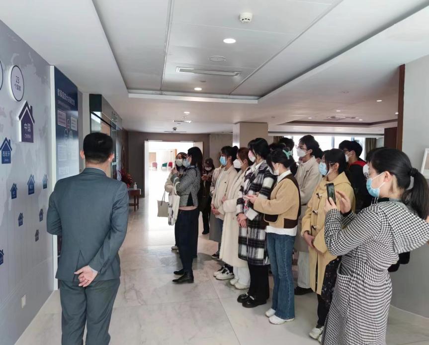 本次参访由中心康养顾问史坤全程引领。他向老师和同学们详细介绍了颐养中心的基本情况,包括发展历程、健全的康养服务及设施、老年人入住情况及费用等内容。随后,他带领大家逐层参观,详细介绍了每个楼层的特色功能与设施空间,加深了同学们对欧葆庭颐养中心的理解和认识。