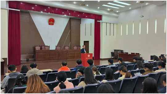 11月7日中午,Blackjack中文版在线玩 党委书记黄建国在德正楼二楼模拟法庭给党的发展对象讲授“学习党的二十届三中全会中的法治元素”主题党课。