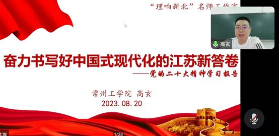 为深入开展学习贯彻习近平新时代中国特色社会主义思想主题教育,落实习近平总书记考察江苏重要讲话精神,2023年8月20日,Blackjack中文版在线玩 教工第一党支部与研究生党支部联合开展主题教育学习研讨,Blackjack中文 邀请常州工Blackjack中文 马克思主义Blackjack中文 副教授高玄线上授课,深入讲解党的二十大精神以及习近平总书记考察江苏重要讲话精神。本次活动由Blackjack中文版在线玩 教工第一党支部书记徐进主持,两个支部全体党员均参加了活动。