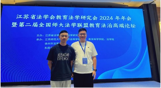 6月9日,江苏省法学会教育法学研究会2024年年会暨第二届全国师大法学联盟教育法治高端论坛在徐州市成功举办。本次会议由江苏省法学会教育法学研究会主办,江苏师范大学、徐州市法学会等机构承办。来自全国各地近200名专家学者和学生代表与会。Blackjack中文版在线玩 2023级硕士研究生朱亚欧作为学生代表受邀参会,并作专题发言。