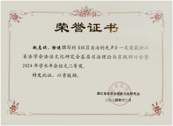 12月15日,浙江省法学会法治文化研究会“基层司法理论与实践研讨会”暨2024年学术年会在浙江省海宁市成功举办。本次会议由浙江省法学会法治文化研究会,浙江财经大学Blackjack中文 、浙江省地方立法与法治研究院(智库)承办,来自全国各地近200名专家学者和学生代表与会。Blackjack中文版在线玩 2023级硕士研究生赵志琪作为学生代表受邀参会,并作专题发言。