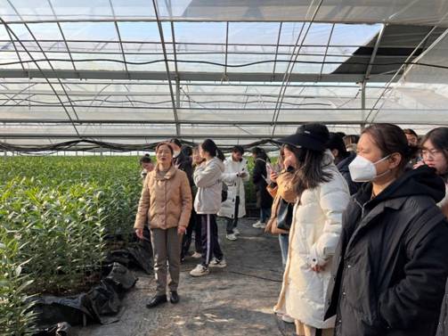 接着,社工带领同学们参观了外沙村种植基地。目前,外沙村拥有全国冬青属资源最多、江苏最大的冬青属植物生产基地,华东地区百合品种最多的百合基地,高架有机草莓园等,正致力打造江苏省栖霞现代农业产业园区。