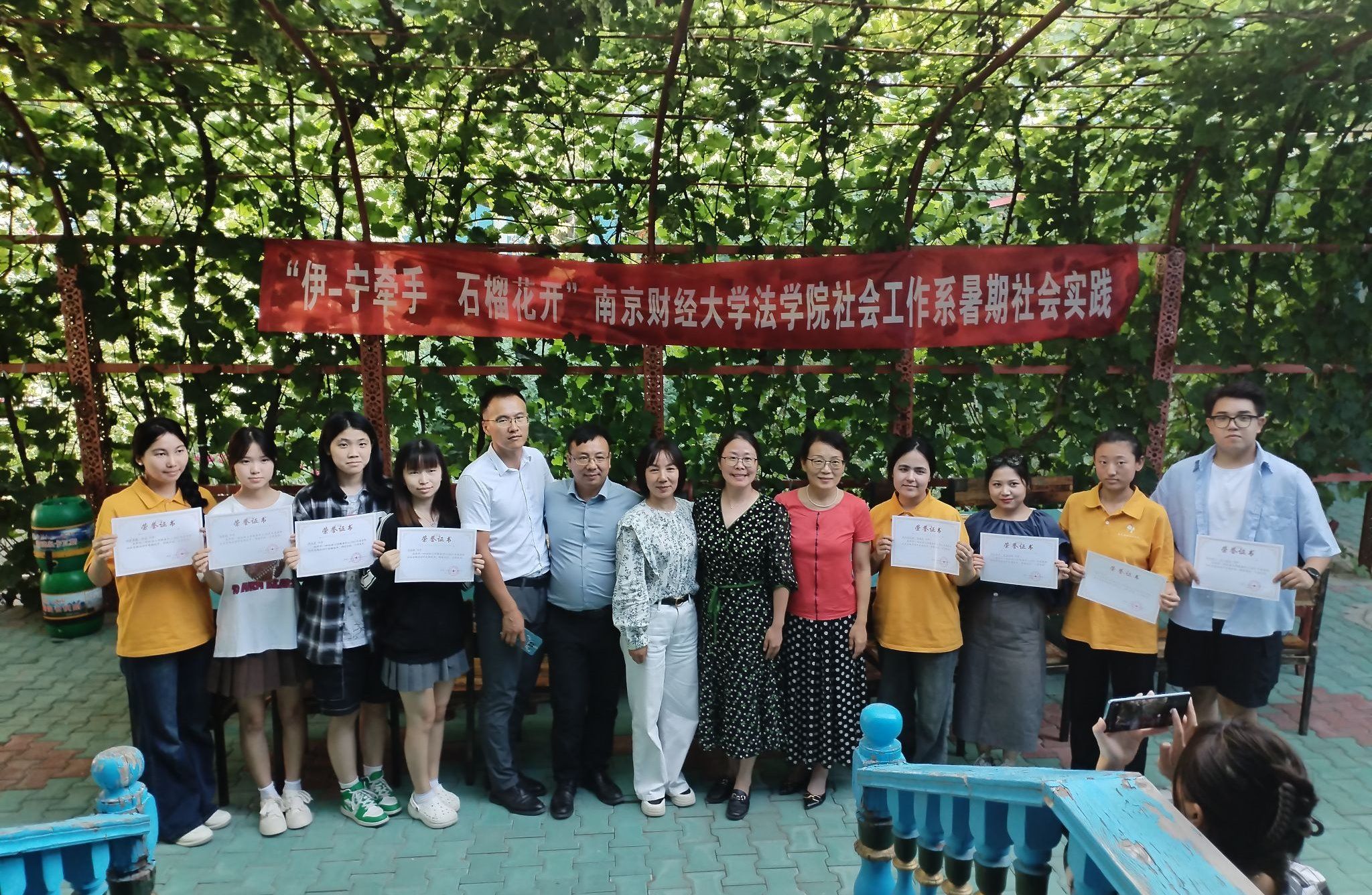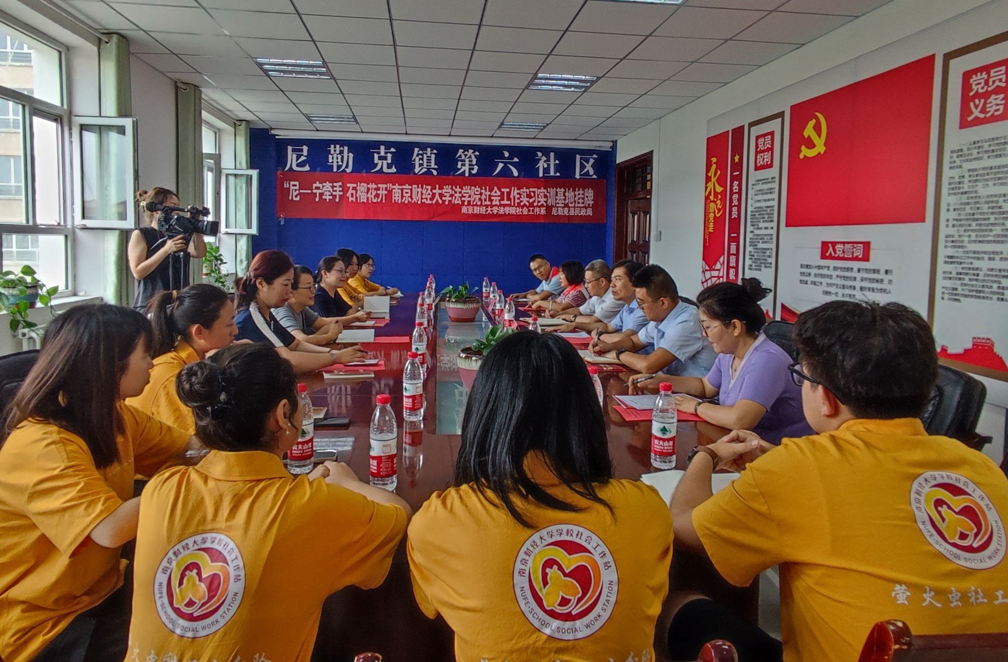 7月16日,在尼勒克镇第六社区,隆重举行了“尼-宁牵手,石榴花开”2024南财Blackjack中文 尼勒克县暑期社会实践启动仪式暨社会工作专业实习实训基地挂牌仪式。尼勒克县民政局党组书记潘雄对南财师生一行的到来表示热烈欢迎。江苏援尼常州(武进)工作组副组长、尼勒克县委常委、副县长王迪对本次活动作了热情洋溢的致辞,提出“希望通过此次共建促进深度合作,在基层社区治理、为小为老专业服务等方面多多助力,同时也希望新疆籍大学生们能够愿意回疆建设家乡!”夏清瑕教授介绍了南财Blackjack中文 和伊犁共建的渊源,在2012年就为伊犁的近50名社区工作者在南财开展一年的培训,希望借此次共建为大学生提供实践平台,为就业拓展空间。新疆伊宁一和社会工作服务中心理事长唐伊梅老师和夏清瑕教授为基地揭牌。