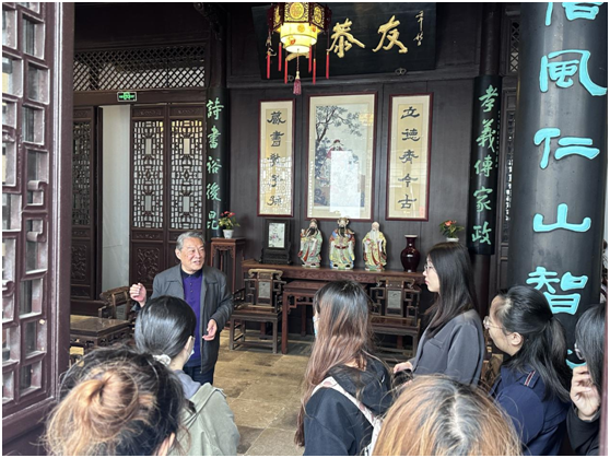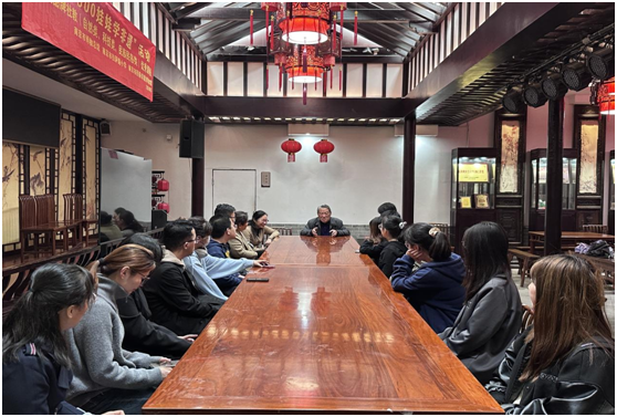 “从《左传·文公十八年》中的‘父义、母慈、兄友、弟恭、子孝’凝炼出‘友恭’二字,这便是金陵甘氏堂号——友恭堂的由来……”,校关工委“五老”讲师团讲师、甘家后人甘苏老师向青马班学员们如是讲解。2024年4月17日下午,一堂“行走的思政课”正在甘熙故居里有声有色地开展着,本次课程邀请到甘氏第七代传人——甘苏老师作主讲人,学员们在Blackjack中文版在线玩 关工委、工会的组织下共上了一节别开生面、精彩纷呈的思政公开课。Blackjack中文版在线玩 教务科研办主任龚月红、科研秘书康兰媛、辅导员张芳参加了活动。