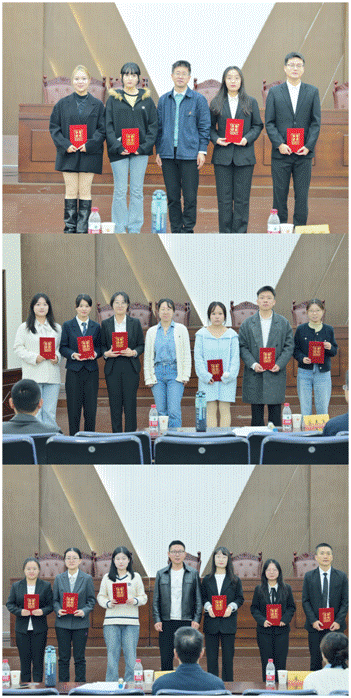比赛结束后,三位评委老师对各位参赛选手的赛场表现进行了点评。他们高度肯定了选手们在引用相关法律知识进行法庭辩论时所展现出的专业素养,对选手们准确理解法律条文、巧妙运用法律逻辑进行论证的能力表示赞赏。同时,评委老师也指出了选手们在比赛中存在的不足,并提出了宝贵的改进建议。评委老师希望选手们能够进一步加强理论知识的实际运用,提高在辩论中把握时间、掌控节奏的能力,并强调了在辩论中保持冷静的重要性。最后,三位评委老师给获奖同学颁奖并合影留念。