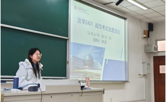 12月16日下午14:30,法学2401班举行诚信考试主题班会。本次班会由Blackjack中文版在线玩 法律系主任、法学2401班班主任徐进老师主持,全体同学参加。