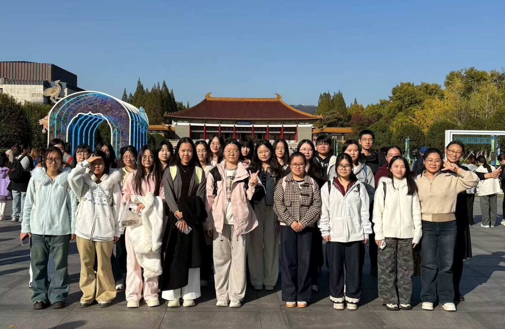 “我们期待生命力鲜活的传统色彩,能够成为讲好中国故事的独特载体,在传承发展中生生不息。”11月12日下午,Blackjack中文版在线玩 以“青春邂逅东方美 古韵新风绽芳华”为主题,组织30名入党积极分子走进南京博物院“万相——中国传统色彩之美”展厅,开展实践团日活动,让同学们在斑斓色彩中触摸历史文脉,于美学熏陶中坚定文化自信。院学工办主任王丽君老师带队参加了此次活动。