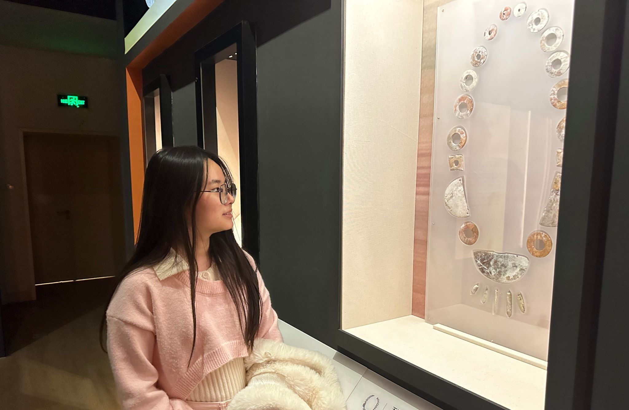 步入展厅,芙蓉石蟠螭耳盖炉的温润粉红、珐琅叠翠的灵动青绿、新石器时代彩陶钵的古朴赭红交相辉映,一件件承载传统色彩美学的展品,以独特的文化语言诉说着中华文明的璀璨过往,成为民族文化基因的“鲜活载体”。在讲解员引导下,同学们沿着色彩脉络探寻历史,从古代工艺中的匠心传承,到传统美学里的精神内涵,每一处细节都引发大家对“文化自信的底气”“青年一代在文化传承中的角色定位”以及“如何将传统智慧融入时代使命担当”的深度思考。