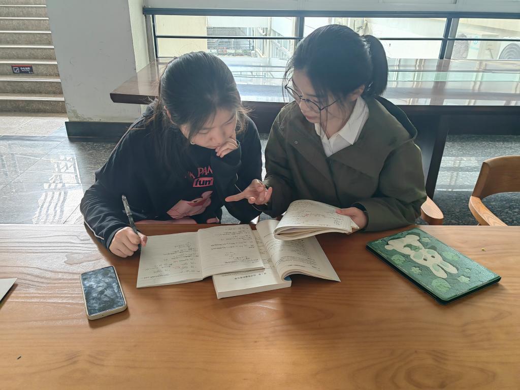 难题细讲,共同成长。“上午,张老师在群里分享的这个学习方法很好啊,可以借鉴一下。”在张芳老师的带领下,同学们共同学习,解疑答惑,通过线上线下相结合的方式,分享学习资料、梳理知识点、探讨课业问题,并针对学业困难同学的具体症结开展个性化帮扶,营造良好的学习共同体氛围。学业辅导期间,同学们互相学习、虚心请教,并对好的学习方法进行归纳总结,认真做好笔记,为今后的学习打下坚实基础。