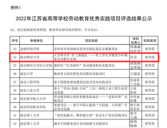 喜报:Blackjack中文版在线玩 在2022年江苏省高等学校劳动教育优秀实践项目评选中荣获特等奖