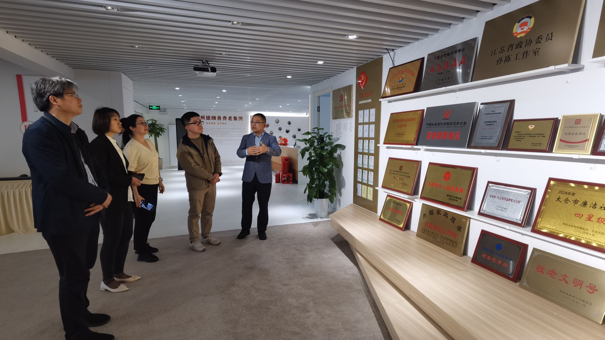 下午,调研组一行先后走访了太仓市启航青少年事务服务中心、德颐善养老集团等社会工作就业示范机构。太仓市启航青少年事务服务中心和德颐善养老集团均为江苏省民政厅认定的5A级社会组织,也是社会工作品牌单位。启航青少年事务服务中心深耕学校、社区、司法社会工作领域十余年,累计服务人次近36万;德颐善养老集团则建立了以老人为中心的全方位、全周期社区养老服务体系,拥有600余名专职养老护理员,月均服务时长超过10万小时。调研组与两家机构负责人就社会工作人才培养与输送、产学结合、党建联建及社会公益等方面进行了深入探讨,初步达成了深化合作的共识。