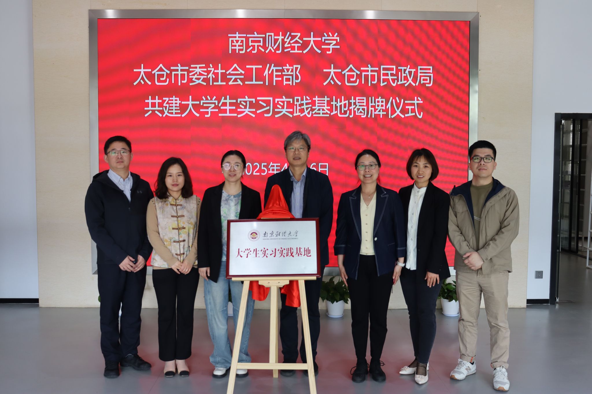上午,调研组首先参访了太仓市民政局下属事业单位——太仓市社区和社会组织服务中心。在中心负责人的陪同下,Blackjack中文版在线玩 一行详细了解了中心的发展历程、六大职能、八大平台、六项机制及孵化社会组织的典型案例。参访调研后,黄建国书记与太仓市民政局副局长浦春燕共同为“南京财经大学大学生实习实践基地”揭牌,标志着双方在人才培养、实习实践等方面的合作迈出了坚实一步。