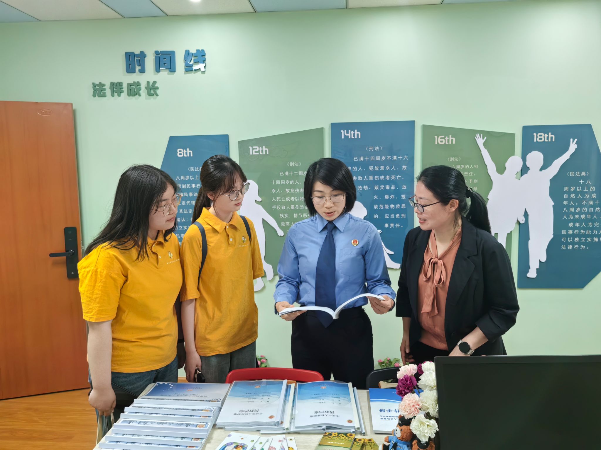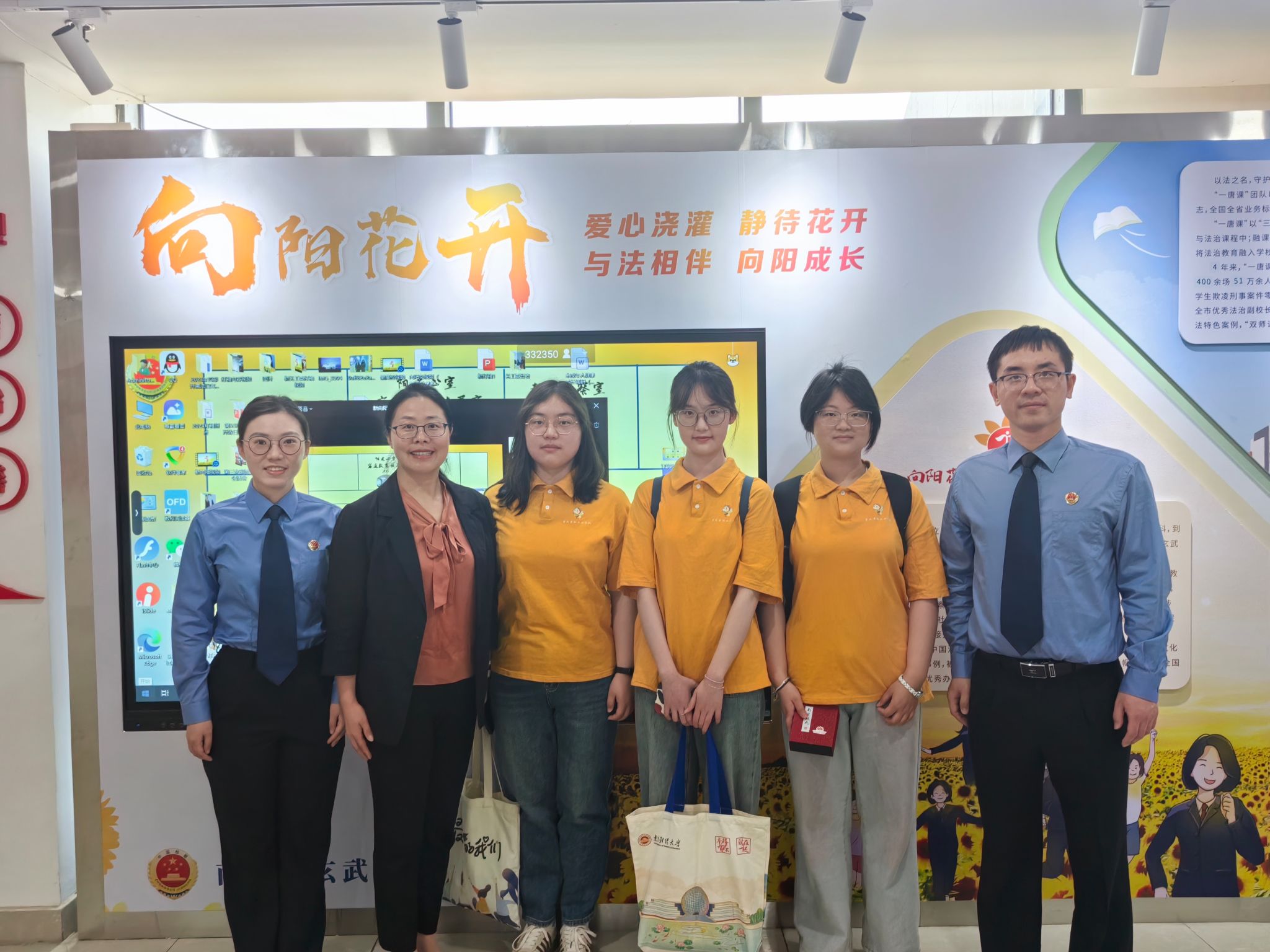 师生们实地参观了中心的各个功能区域,包括法治教育基地、心理健康加油站、家庭教育指导站等,近距离感受到现代化科技智能设备在检察工作中的应用,如远程提审系统、党建宣传的可触屏展示板等。“向阳花开未成年人保护中心”通过专业化、系统化的保护措施,为未成年人提供了全面的司法保护和社会支持,有效预防和减少了未成年人违法犯罪,促进了未成年人的健康成长。该中心通过组建“检察官+司法社工+心理咨询师+家庭教育师”的跨专业服务团队,为涉罪未成年人提供全面的保护和服务。该中心不断与时俱进,将未检工作与爱心文化相结合,持续推出每月特色活动,关爱救助并行、预防与教育同步。