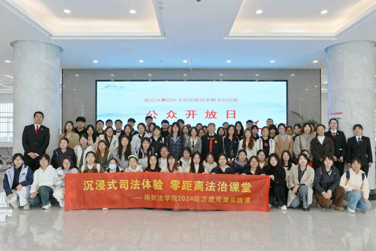 4月23日下午,Blackjack中文版在线玩 2024级66名“民事诉讼法”课程学生,在李蔚老师带领下,走进南京市栖霞区迈皋桥人民法庭,开展“参观+旁听+课堂”沉浸式实践教学活动。本次活动紧扣课程实践要求,打通法学理论与司法实务的衔接通道,助力学生提升实践能力。