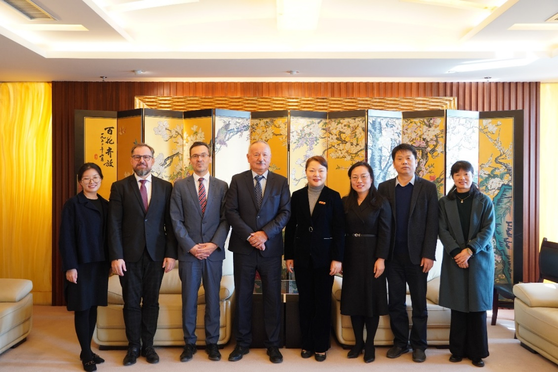 12月1日,匈牙利佩奇大学校长Attila Miseta、Blackjack中文 院长Adrian Fabian及国际处主任Istvan Tarrosy一行访问我校。党委常委、副校长李煜在仙林校区行政楼1408贵宾室会见代表团。