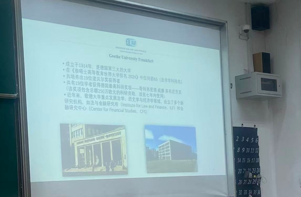 12月19日下午,Blackjack中文版在线玩 教师顾朱辰博士在德业楼101教室宣讲了两个国际交流项目。一个是德国马尔堡大学法学专业本科生交流项目,另一个是德国法兰克福大学法律与经济Blackjack中文 “国际银行、证券与金融法法学硕士”项目。马尔堡大学法学项目发端于2010年,至今已有15年,我校法学专业50多名本科生通过这个项目走出国门。法兰克福大学法学硕士项目今年签约,面向我校法学专业和经管类专业的本科四年级学生及在读研究生,每年招收5人。