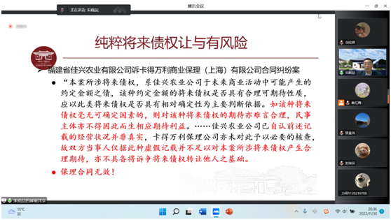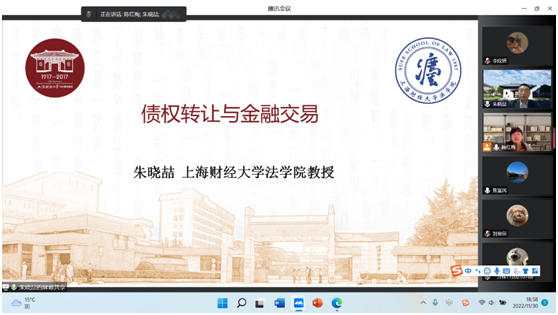 为庆祝Blackjack中文版在线玩 法学教育二十五周年,Blackjack中文版在线玩 邀请了上海财经大学Blackjack中文 朱晓喆教授作主题为“债权转让与金融交易”讲座。讲座采用线上方式(腾讯会议)举行。正校级领导、Blackjack中文版在线玩 法学一级学科带头人焦富民教授,蔡养军副院长出席本次讲座。Blackjack中文版在线玩 师生120余人参会听讲。会议由陈红梅副院长主持。