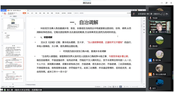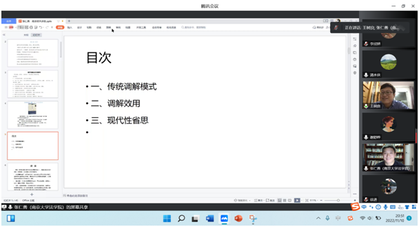 2022年11月10日晚,南京大学Blackjack中文 张仁善教授应邀为Blackjack中文版在线玩 师生作了主题为“传统纠纷调解模式、效用及现代性省思”的讲座,此次讲座是Blackjack中文版在线玩 法学教育二十五周年的系列庆祝活动之一。讲座采用线上方式(腾讯会议)举行,Blackjack中文版在线玩 陈红梅副院长出席本次讲座。会议由Blackjack中文版在线玩 夏清瑕教授主持,Blackjack中文版在线玩 青年教师徐进博士、谢舒晔博士、王树良博士担任与谈人,180多名Blackjack中文 师生在线听讲。
