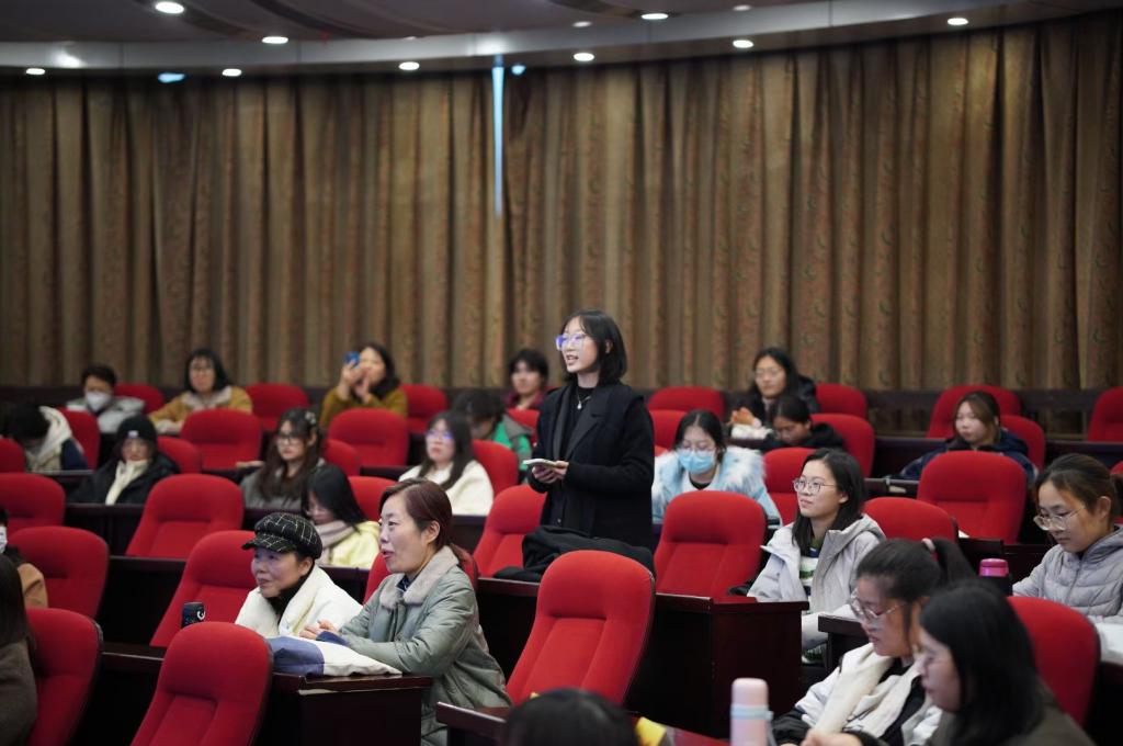 黄菡教授从五个方面介绍了作为当代大学生如何更好地做好自我心理的建设,并且结合现实生活中的鲜活案例,让听众更好地理解如何做好积极的自我心理建设。她给出以下五点建议:第一,反思生活信念,避免不合理信念的思想,在生活中多尝试理解并且建立弹性思维。第二,关注A型性格。A型性格的人经常容易自加压力。所以,黄菡教授提出第三个建议,即创造快乐体验。人要学会让自己休息起来,做自己最想做、最快乐、最放松因而可能是最快乐的事。第四,调整挫折反应,修正关于挫折的感知,要坚决避免非理性反应,努力促发积极性反应,合理使用正当防卫性反应。第五,学会建设重要关系,学会建立和他人的亲密关系。黄菡教授的讲座深入浅出,生动有趣,结合案例为在场师生带来了一场别开生面的心理健康讲座。现场时常传来阵阵欢笑,气氛活跃热烈。